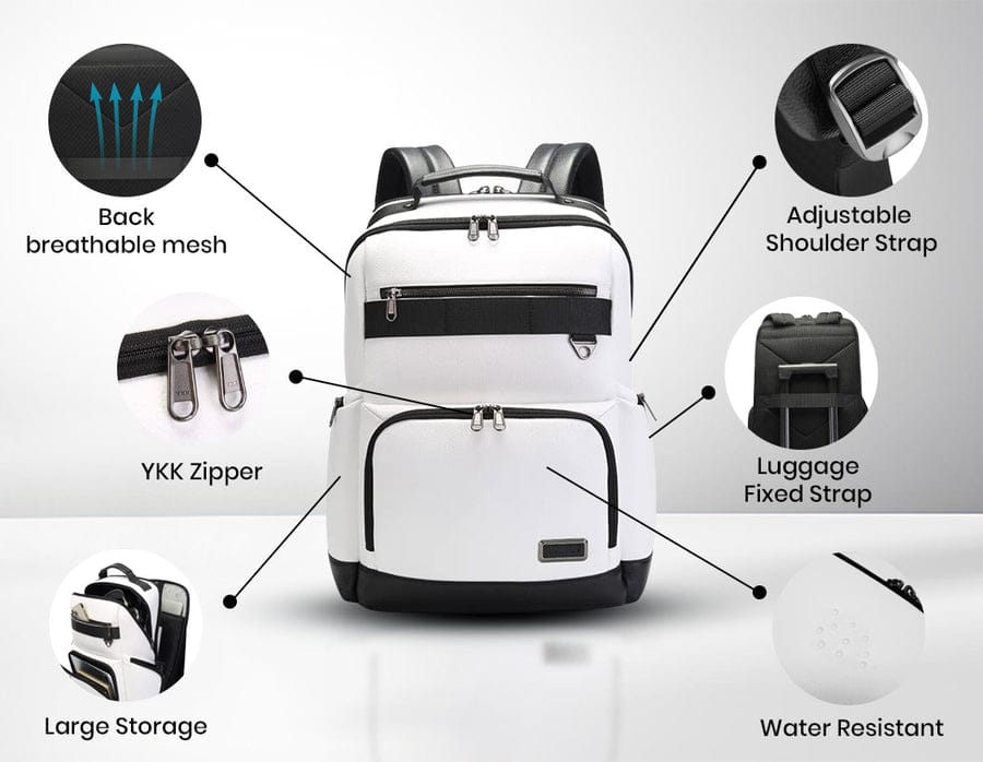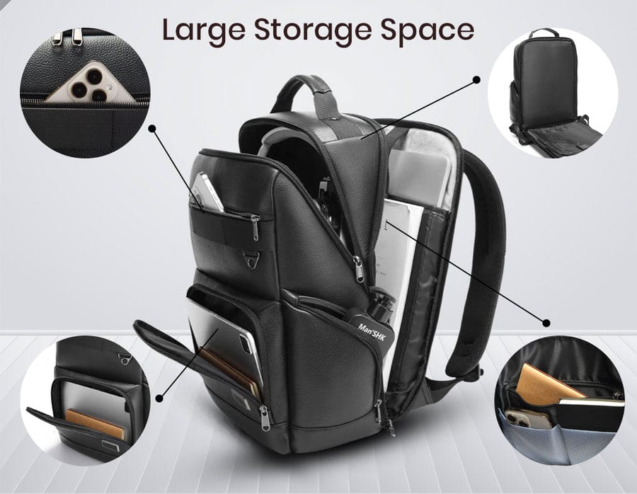 Perfect for work, school, or travel, this backpack secures your essentials while fitting seamlessly into your busy lifestyle. Its classic leather design combines with modern comfort features to keep you organized and confident wherever you go.
