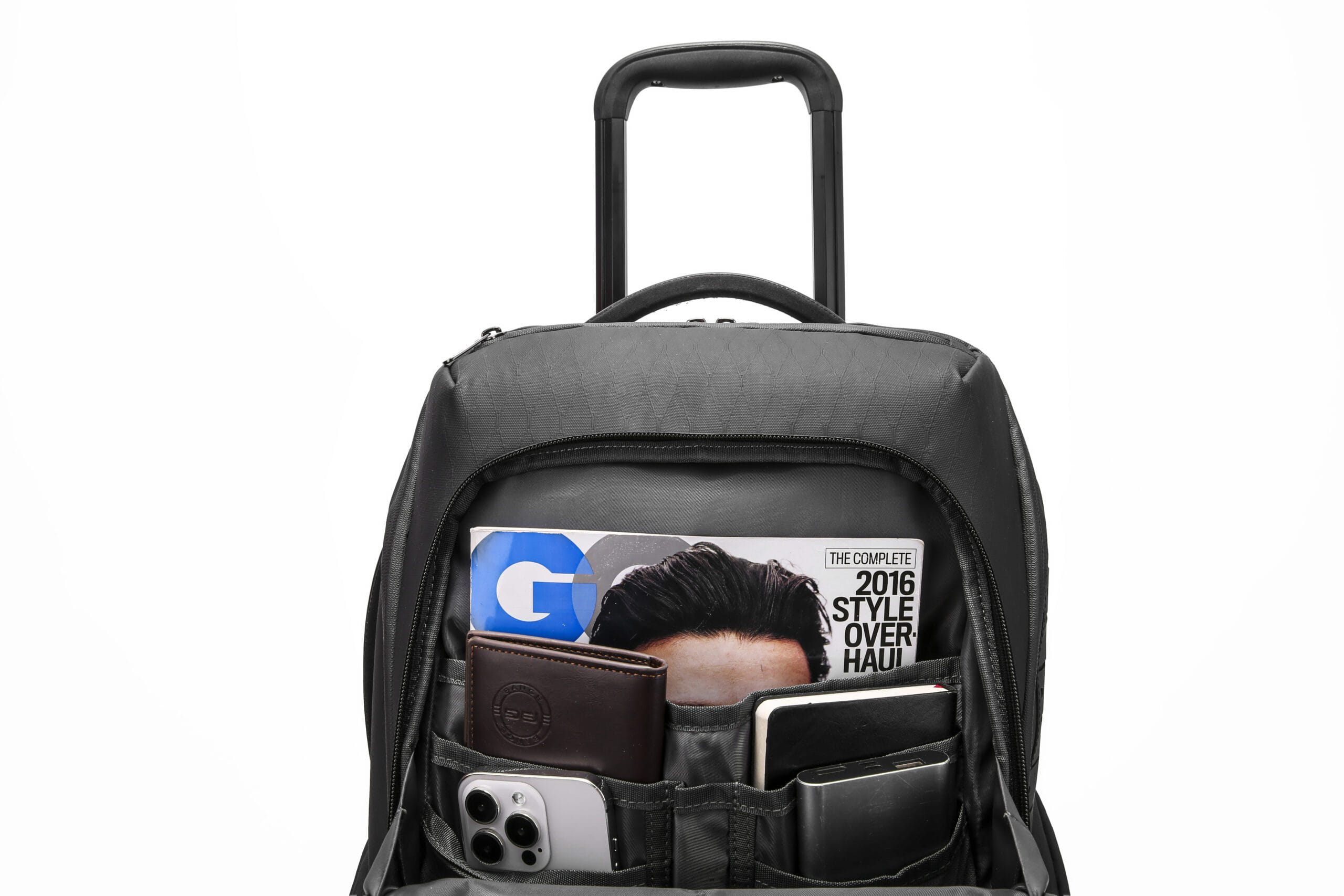 - Ergonomic, breathable back panel and adjustable shoulder straps ensure comfortable carrying, with a luggage strap to attach to suitcases.
