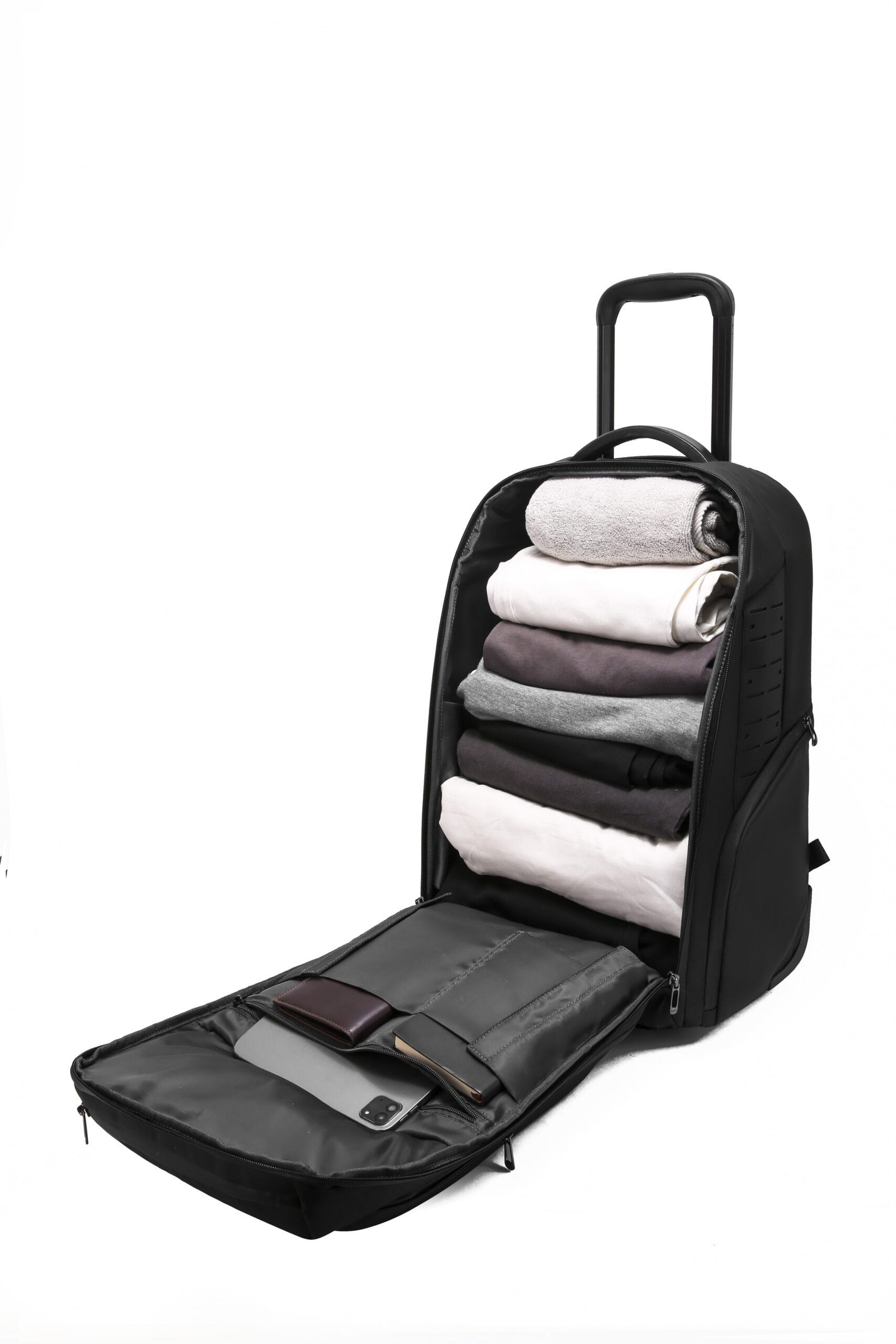 - Spacious main compartment with expandable design for clothes, gadgets and accessories, ideal for business trips and weekend getaways.